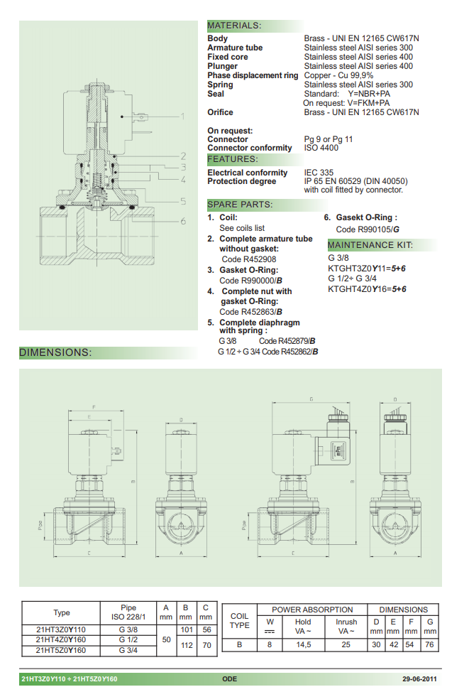 Van điện từ ODE: 21HT3Z0Y110 ÷ 21HT5Z0Y160