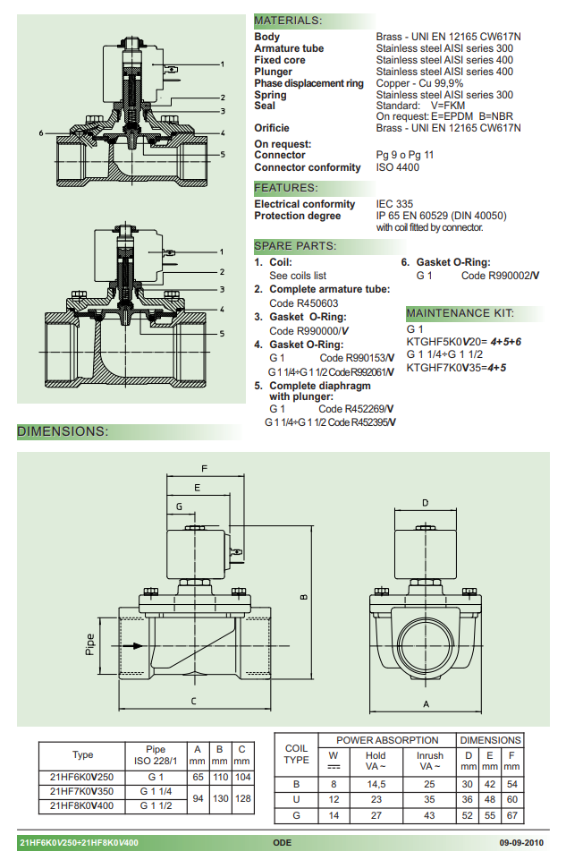 Van điện từ ODE : 21HF6K0V250, 21HF7K0V350, 21HF8K0V400