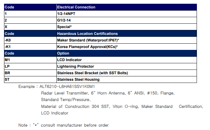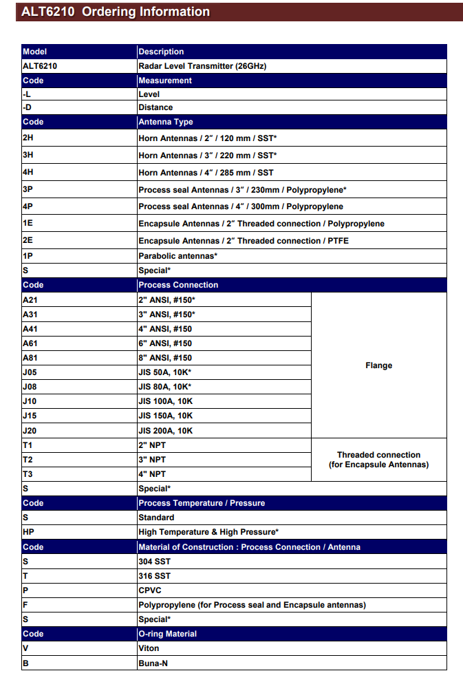 Contacted level transmiter: ALT6210-H ~ ALT6210-P