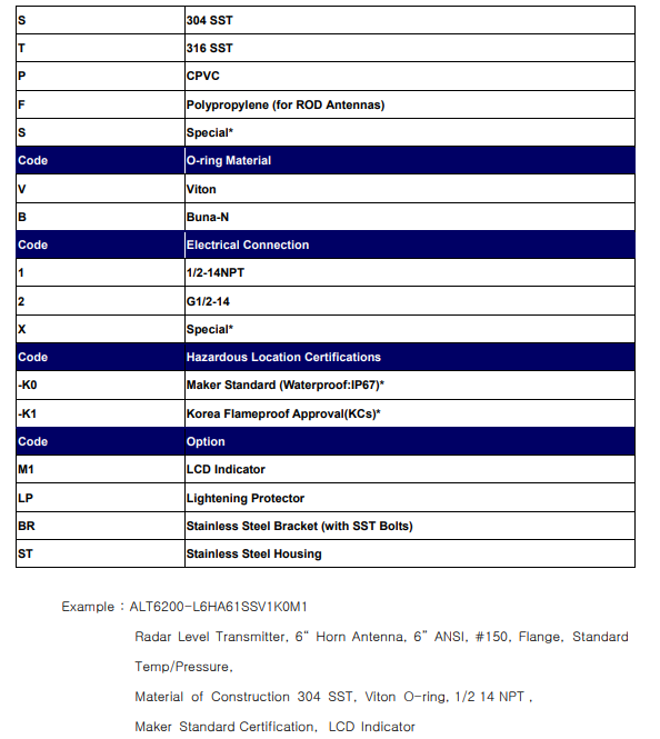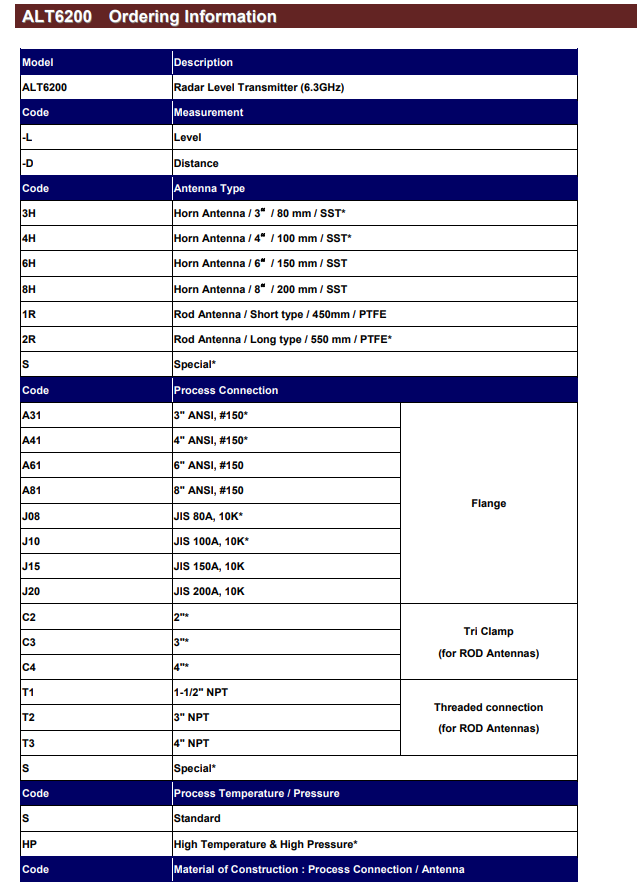 Contacted level transmitter: ALT6200-H ~ ALT6200-R
