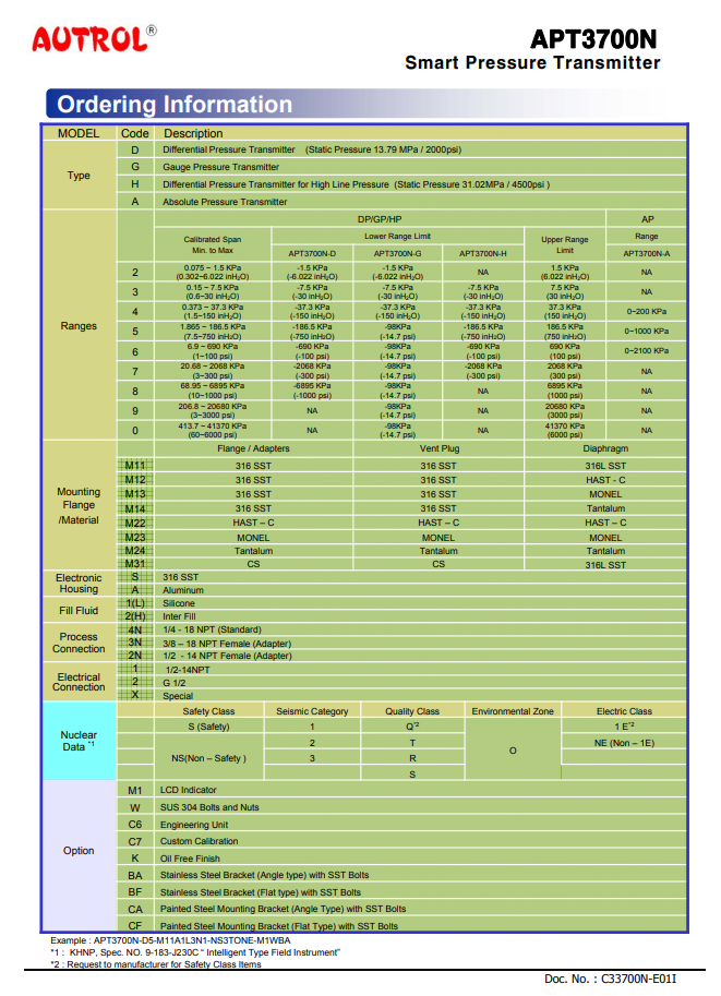 Smart pressure transmitter: APT3700N-G ~ APT3700D-ST