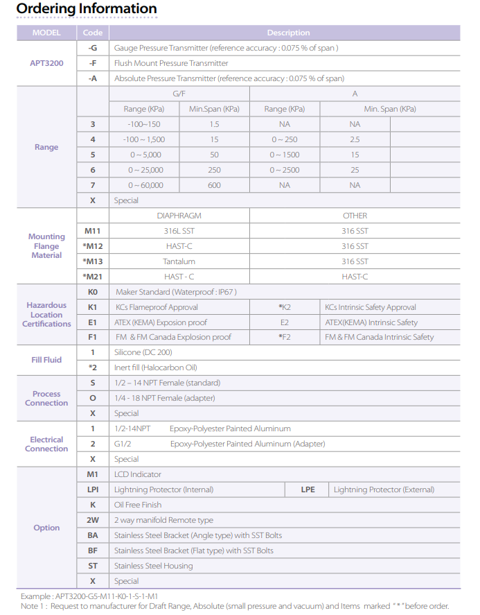 Smart prassure transmitter: APT3200-G/F ~ APT3200-G-ST