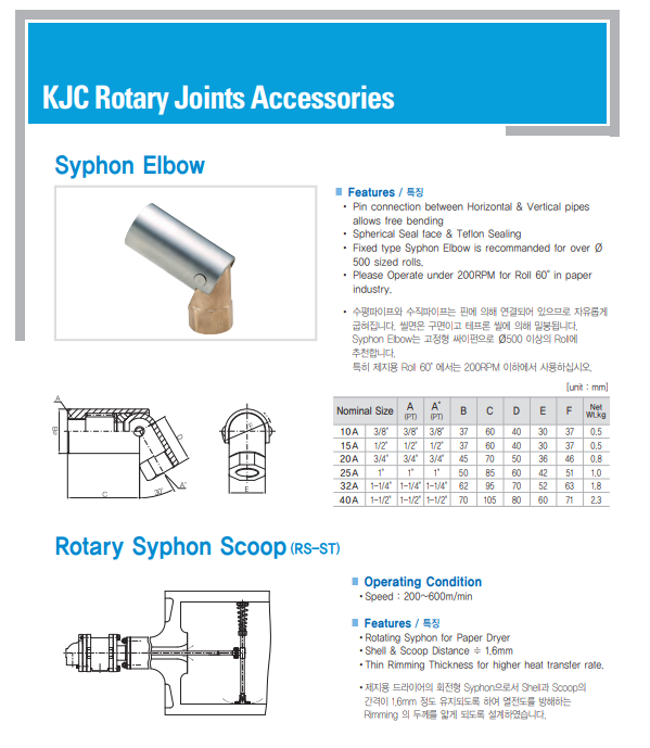 Rotary Joint : KR3701/02, KR3705, KR3721, KR3722, KR3725, KR3711, KR3712, KR3715