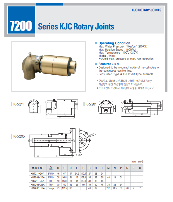 Rotary Joint : KR3701/02, KR3705, KR3721, KR3722, KR3725, KR3711, KR3712, KR3715