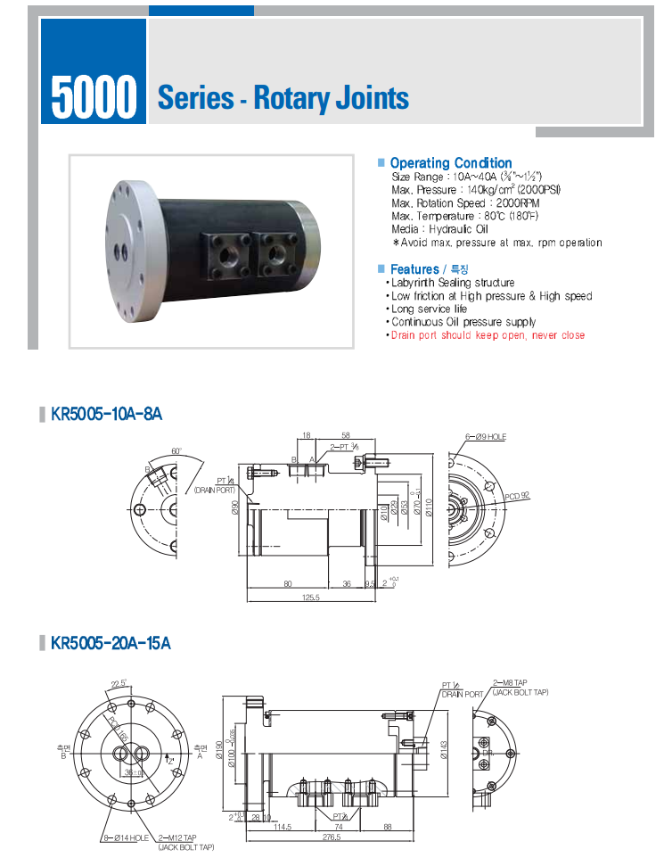 Rotary Joint : KR5005-10A-8A, KR5005-20A-15A, KR5005-25A-8A, KR5005-25A-15A/*2P/*3P