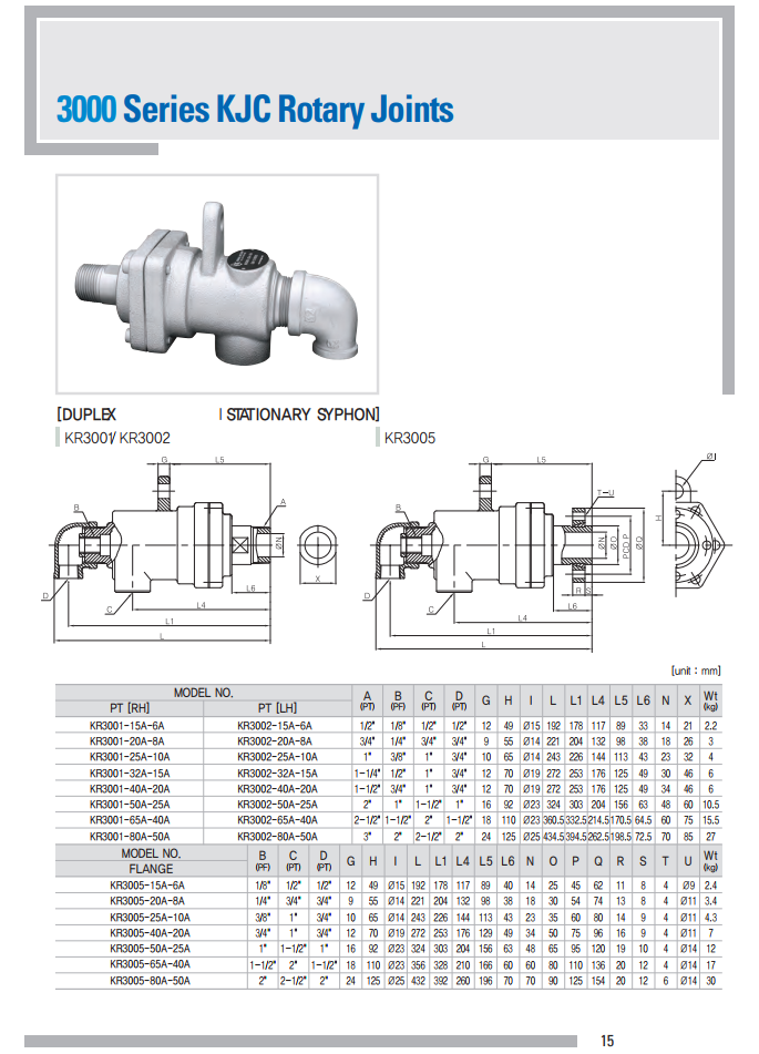 Rotary Joint : KR3701/02, KR3705, KR3721, KR3722, KR3725, KR3711, KR3712, KR3715