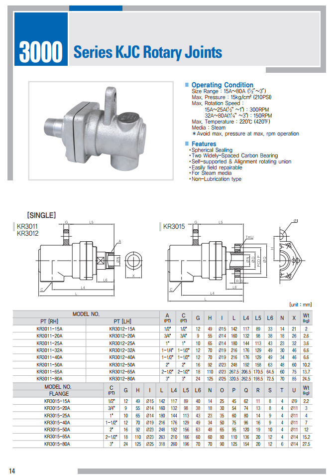 Rotary Joint : KR1011, KR1012, KR1015, KR1001, KR1002, KR1005, KR1021, KR1022, KR1025