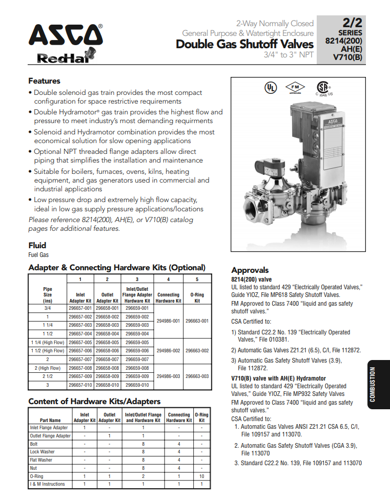 Asco double gas shutoff valve series: 8214(200) AH(E) , V710(B)