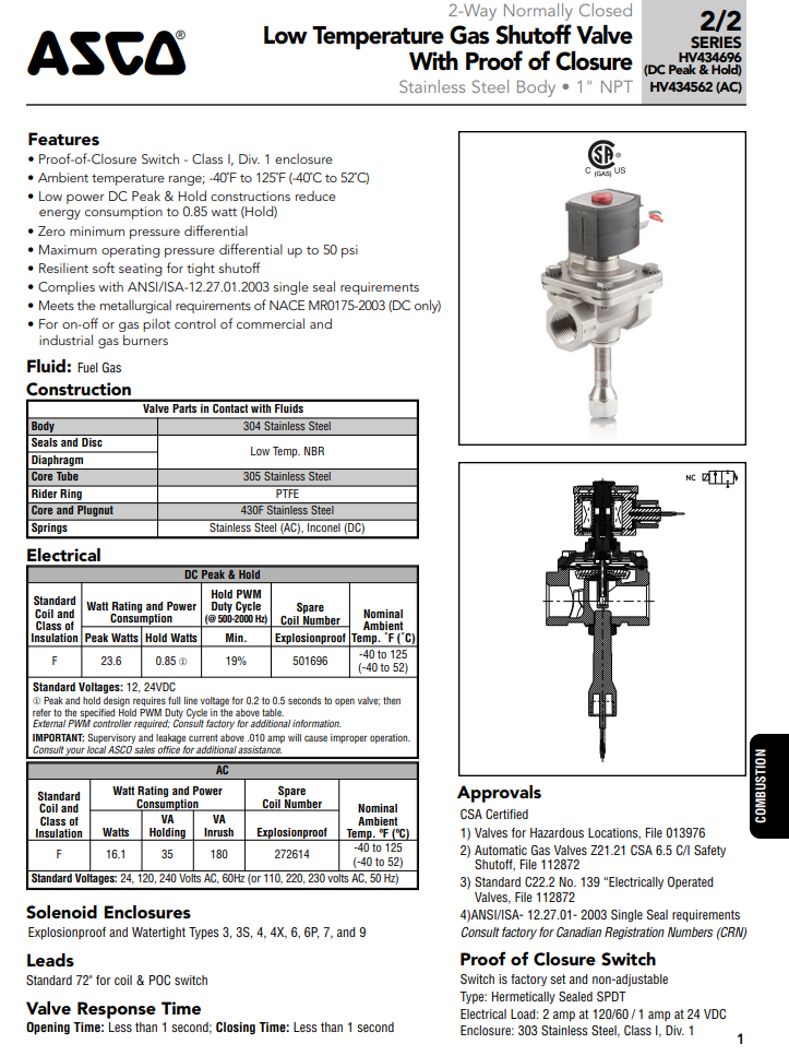 ASCO Gas shutoff valve series: HV434696, HV434562