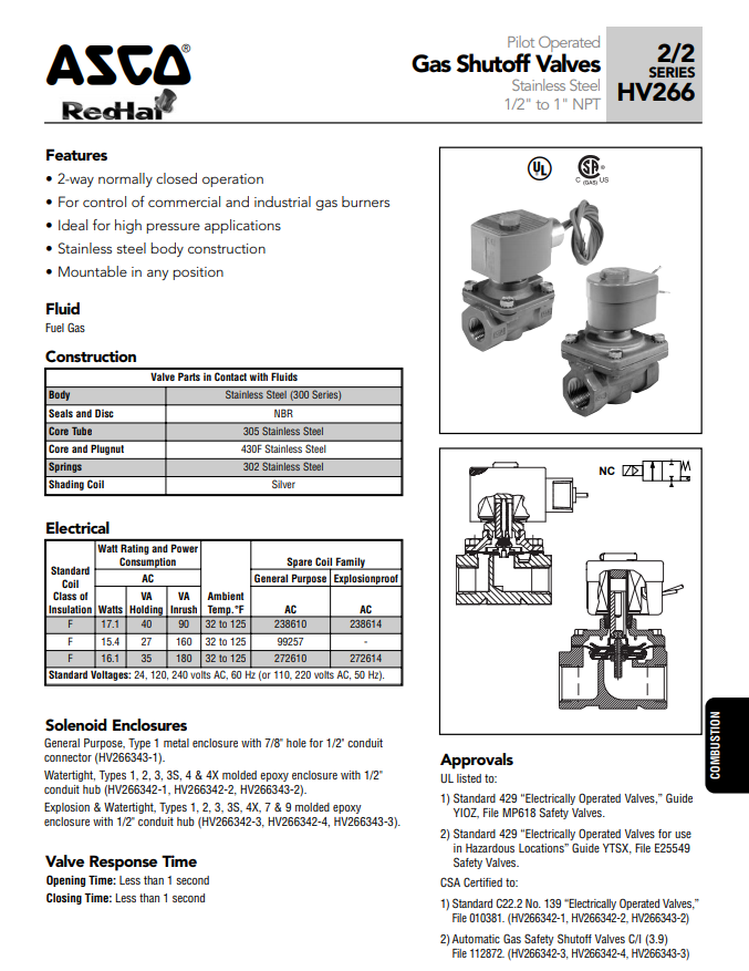 ASCO Gas shutoff valve series: HV266