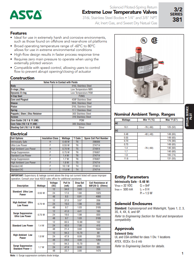 ASCO Solenoid coil: CFSCIS / CFSDIS / CFVTIS