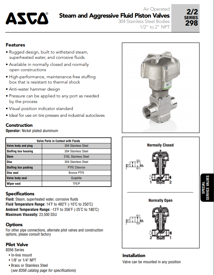 ASCO Steam piston valve series: 298