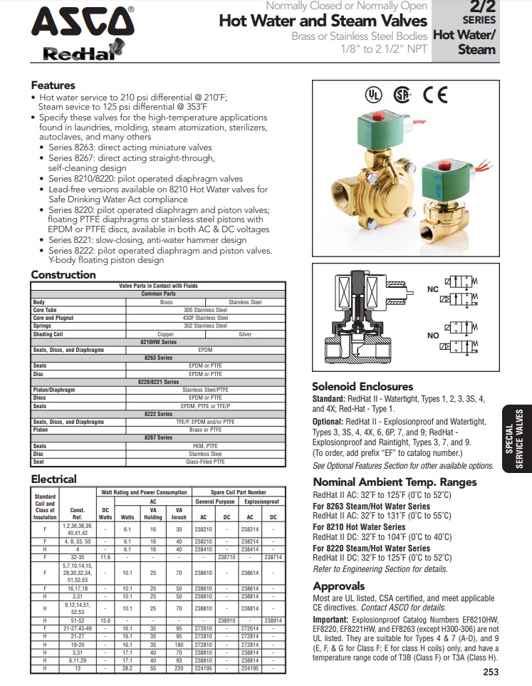 ASCO Hot water and steam solenoid valve series: 8210, 8221, 8220, 8263, 8267