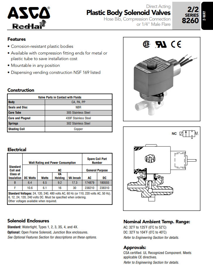ASCO Plastic body solenoid valve series: 8260