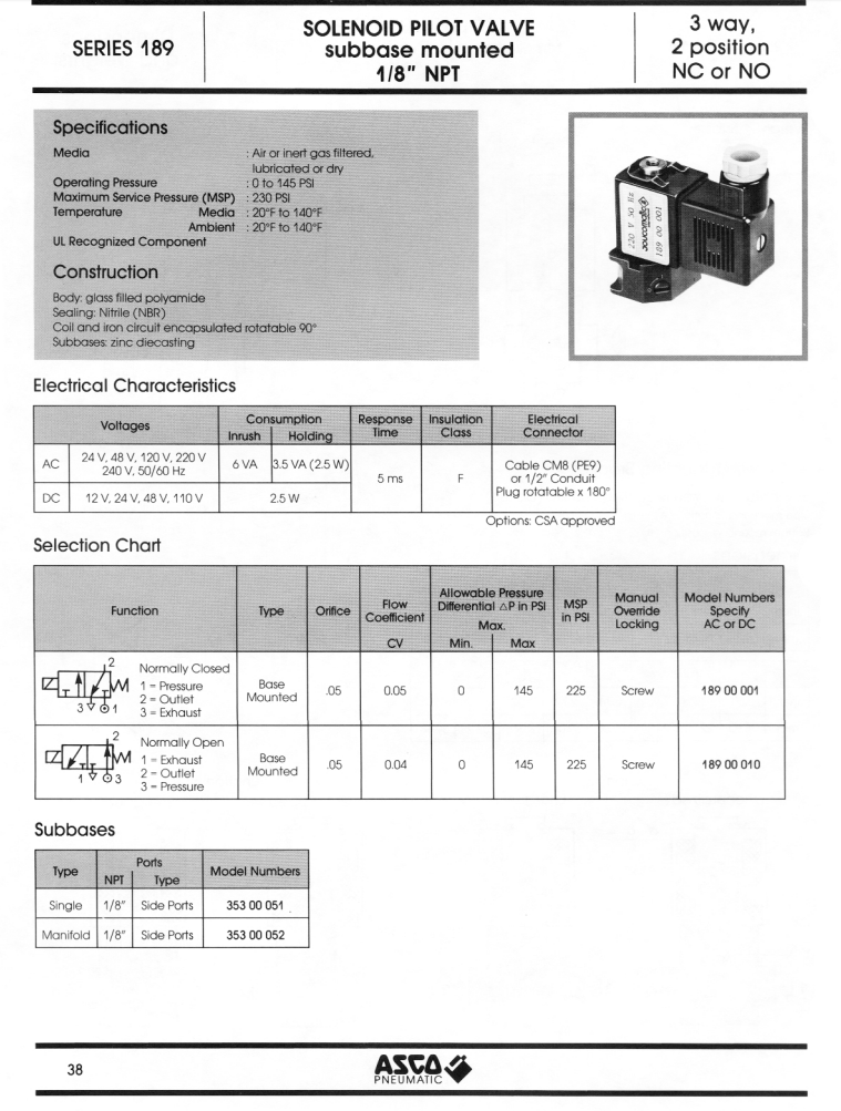 ASCO Solenoid pilot valve series:189