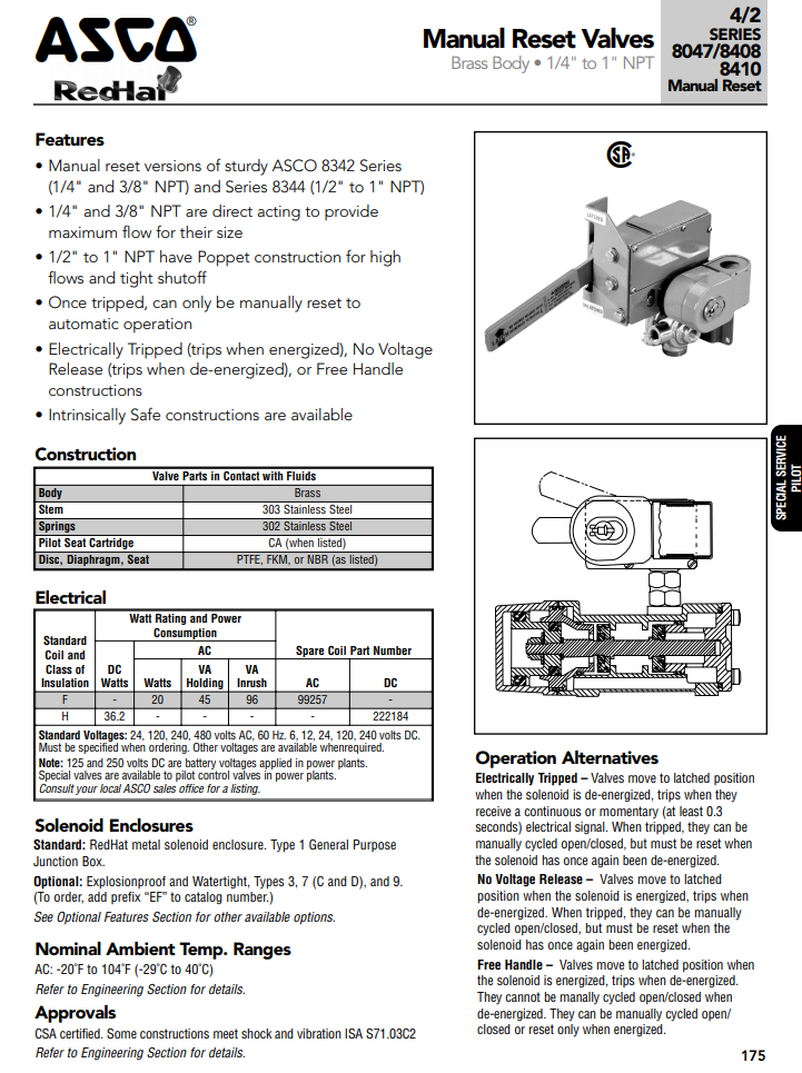 ASCO Manual reset solenoid valve series: 8047, 8408, 8410
