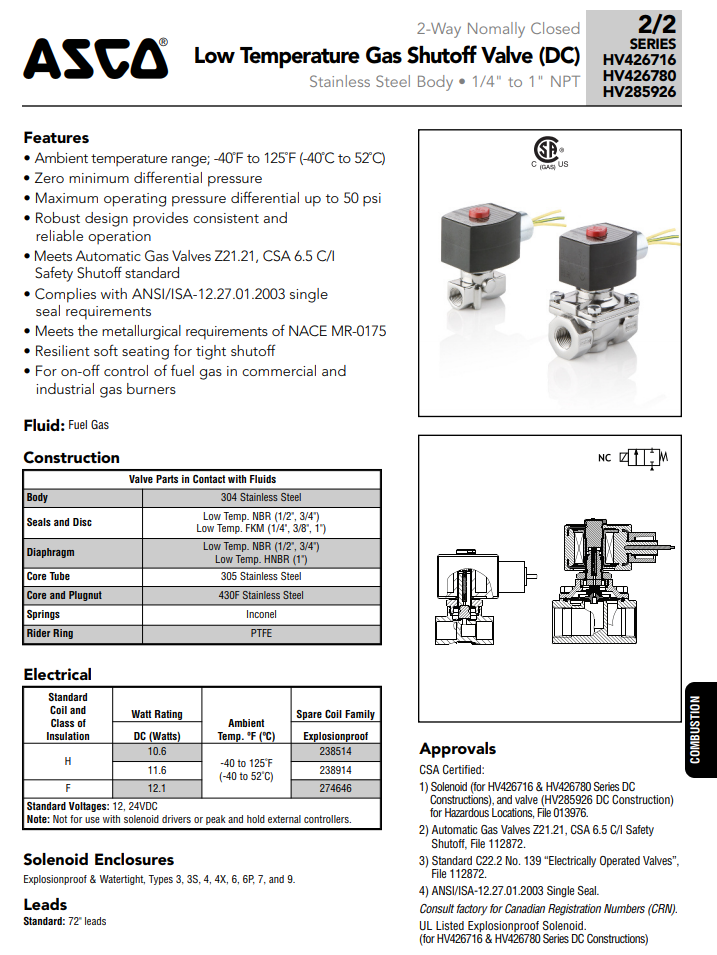 ASCO Gas shutoff valve: HV426716, HV426780, HV286926