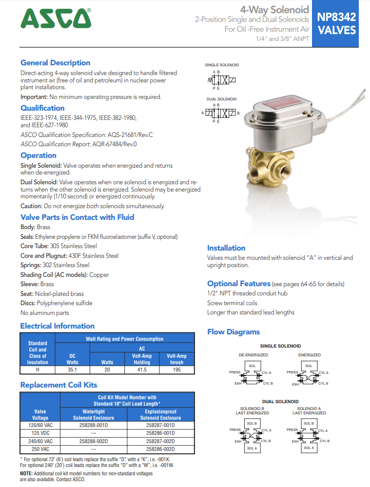 ASCO Solenoid coil: CFSCIS / CFSDIS / CFVTIS