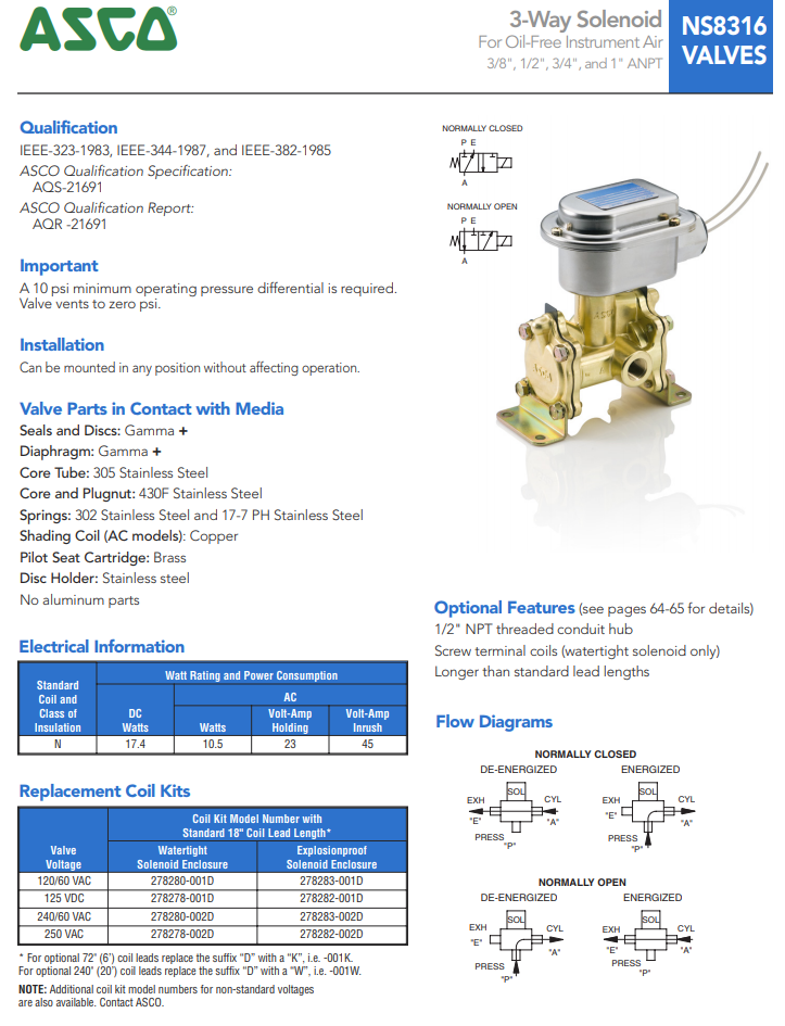 ASCO Solenoid coil: CFSCZN / CFSCVT
