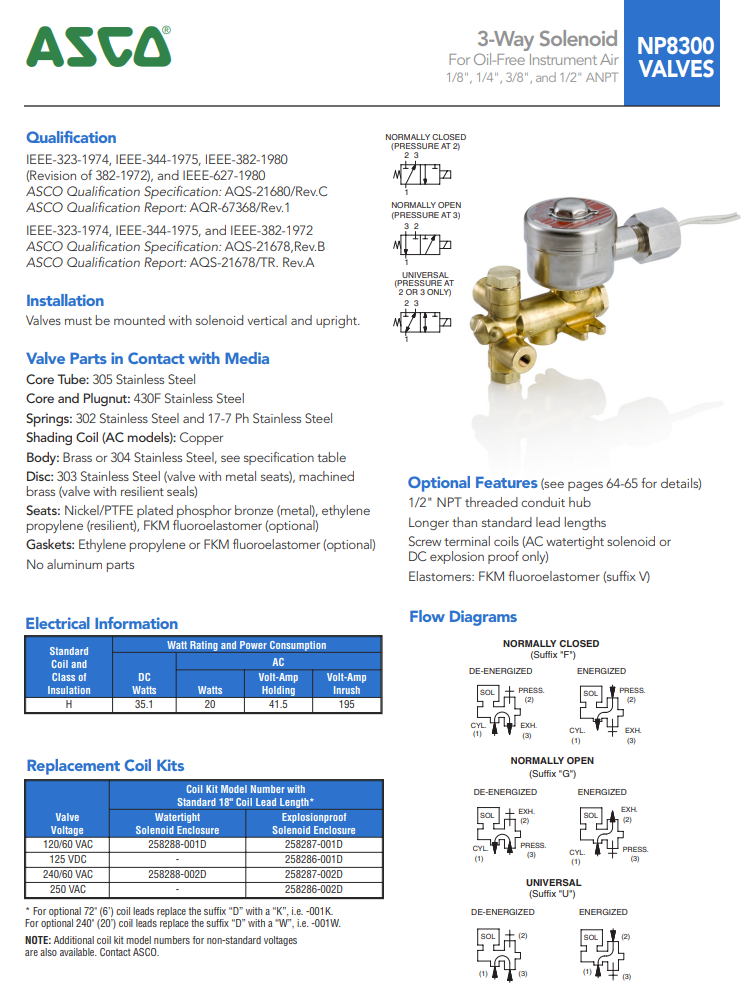 ASCO 3-way solenoid valve series: NP8300