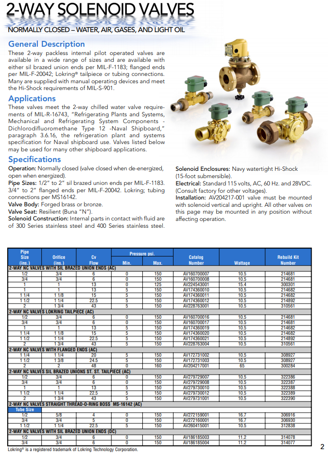 ASCO Marine solenoid valve: AV160700007 ~ AV186185004