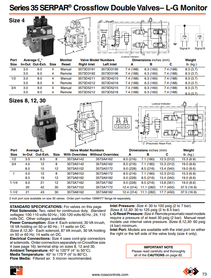 ROSS Double valve: Series 35 Size 8, 12, 30