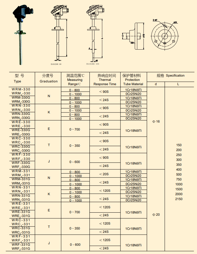 Can nhiệt K, E : WRN-320~WRN-331, WRE-320 ~ WRE-331