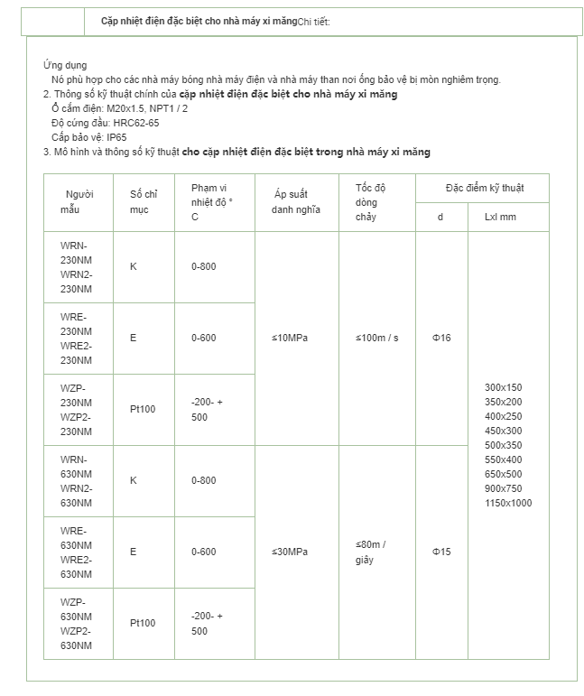 Can nhiệt cho nhà máy xi măng: K, E, Pt100