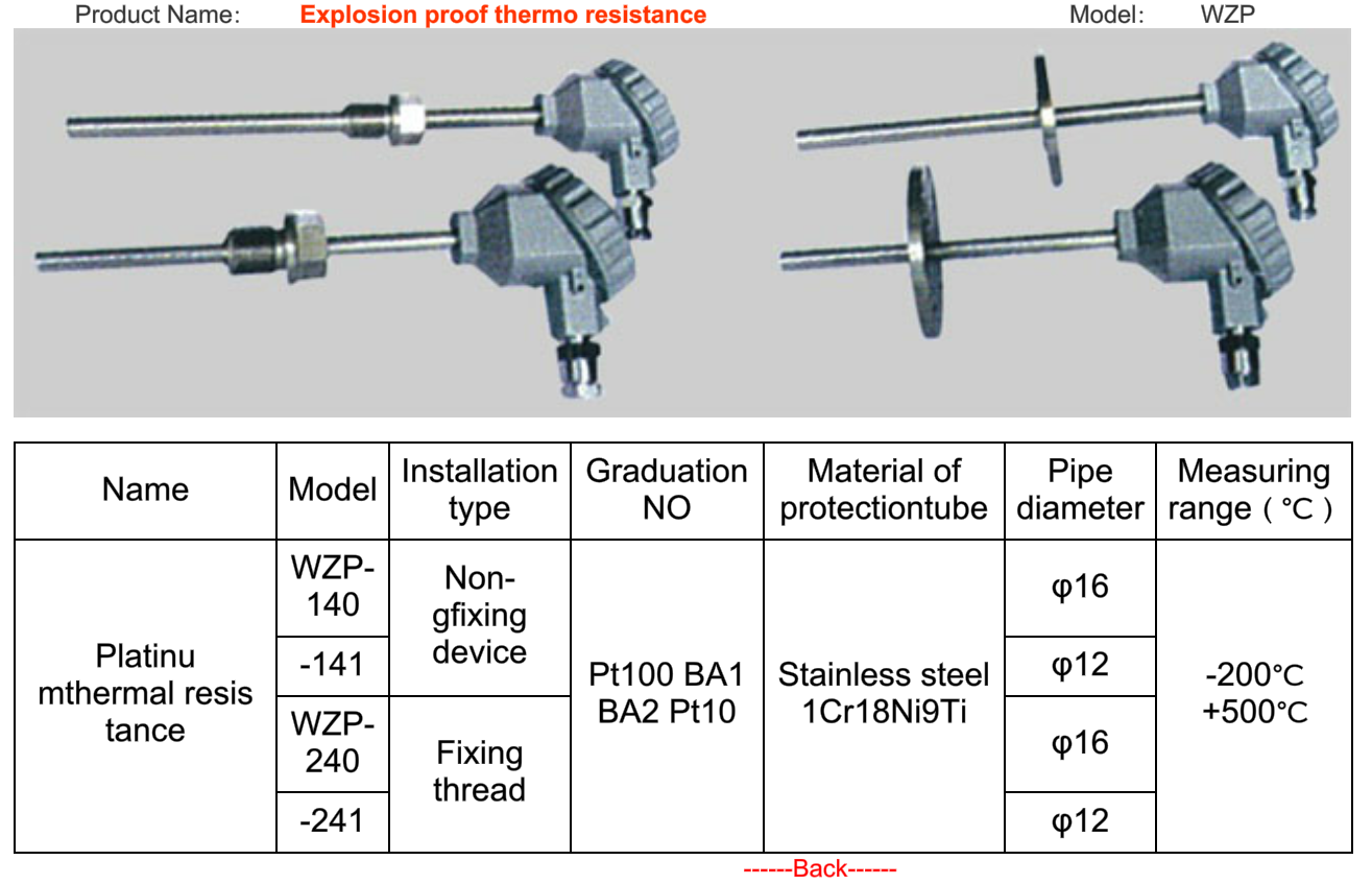 Can nhiệt chống cháy nổ Pt100 : WZP-140 ~ WZP-241