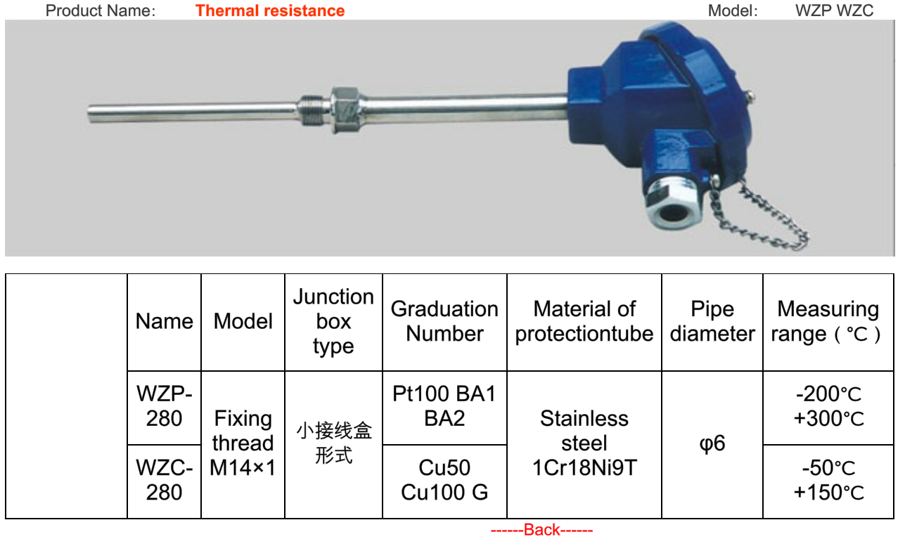 Can nhiệt chống cháy nổ Pt100 : WZP-140 ~ WZP-241