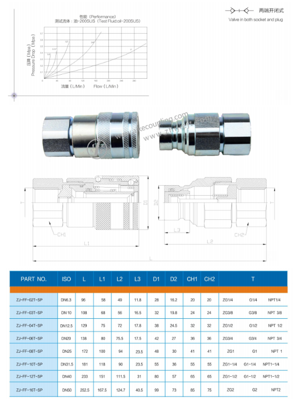 Khớp nối nhanh khí nén: ZJ200T - SM, SH, SF, SN, PM, PH, PF, PN