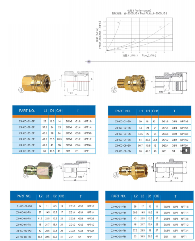 Khớp nối nhanh khí nén: ZJ200T - SM, SH, SF, SN, PM, PH, PF, PN