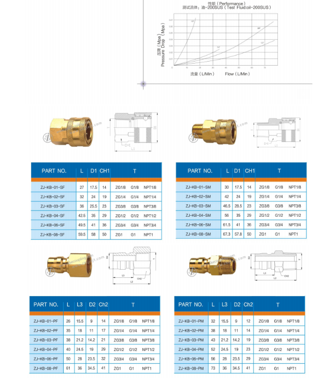Khớp nối nhanh khí nén: ZJ200T - SM, SH, SF, SN, PM, PH, PF, PN