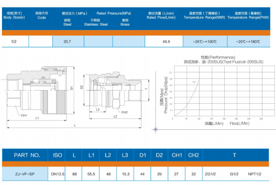 Khớp nối nhanh khí nén: ZJ200T - SM, SH, SF, SN, PM, PH, PF, PN
