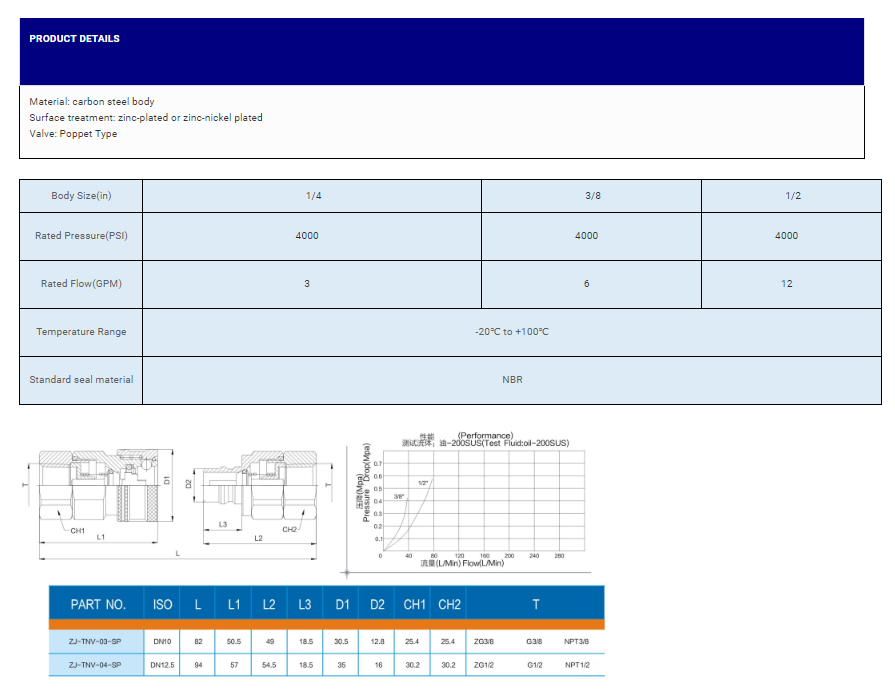 Khớp nối nhanh khí nén: ZJ200T - SM, SH, SF, SN, PM, PH, PF, PN