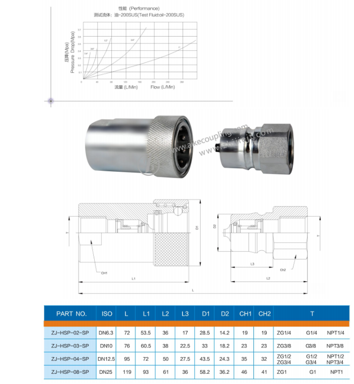 Khớp nối nhanh khí nén: ZJ200T - SM, SH, SF, SN, PM, PH, PF, PN