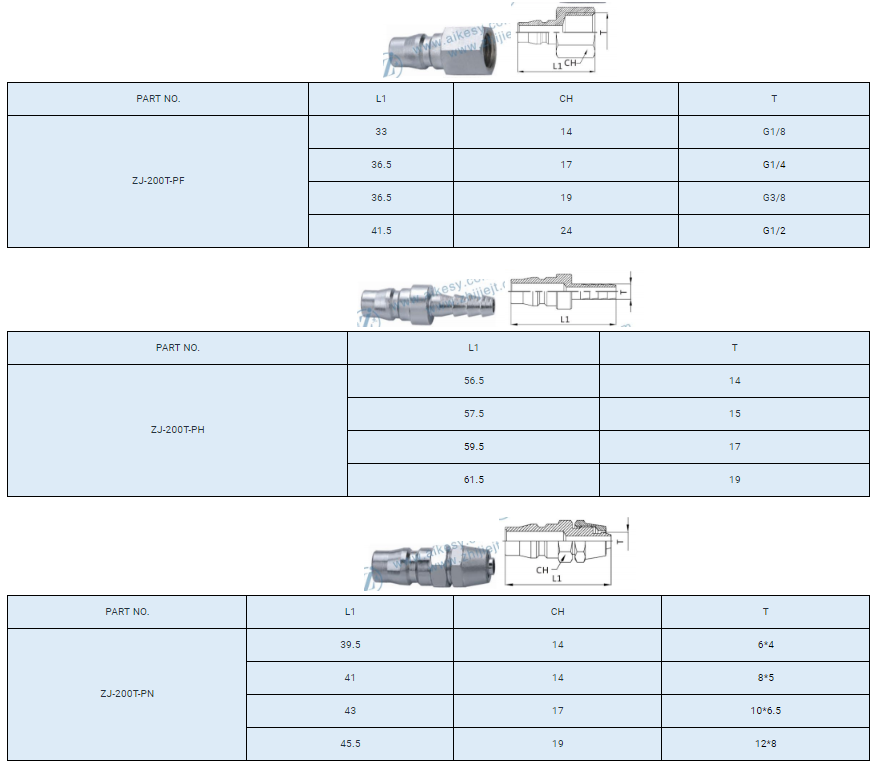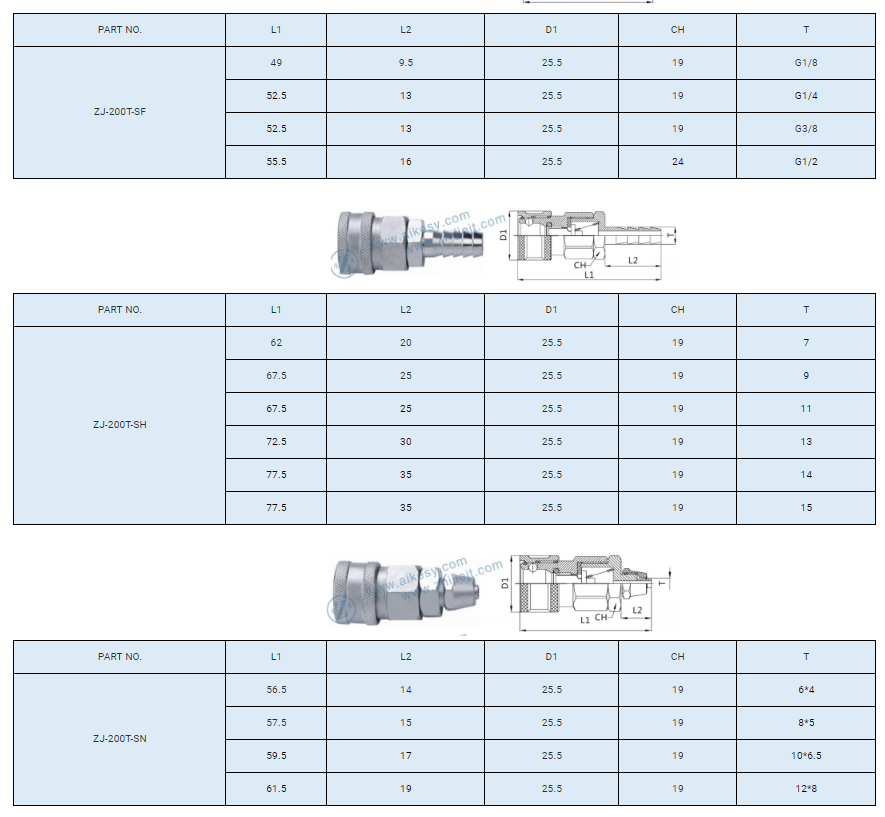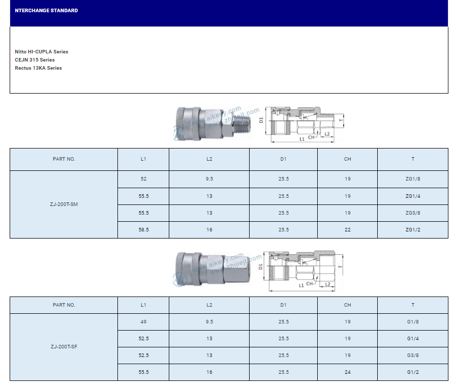 Khớp nối nhanh khí nén: ZJ200T - SM, SH, SF, SN, PM, PH, PF, PN