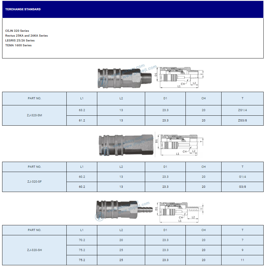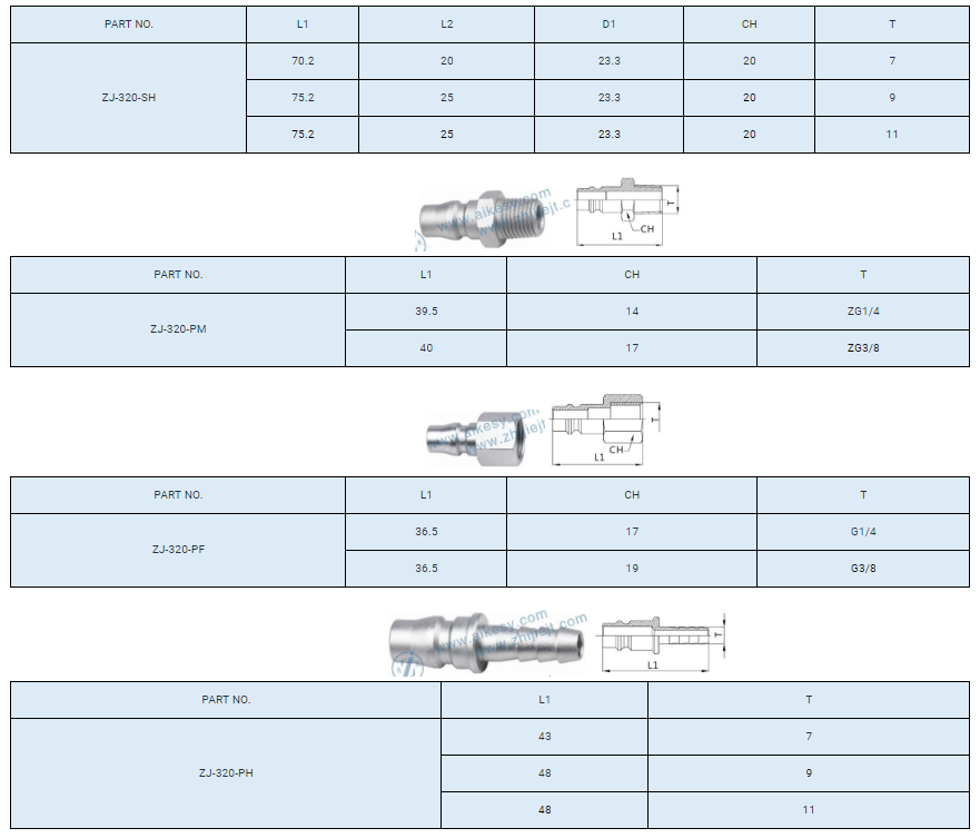 Khớp nối nhanh khí nén: ZJ320 - SM, SF, SH, PM, PH, PF