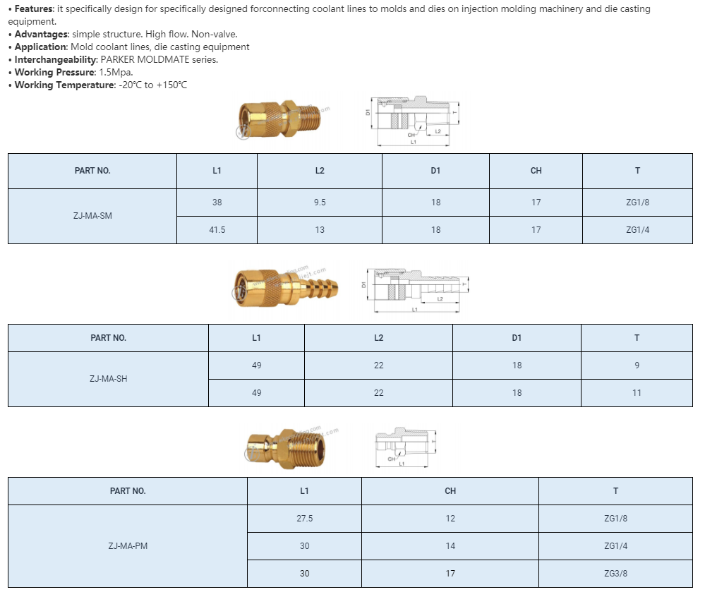 Khớp nối nhanh khí nén: ZJ-MA- SM, SH, PM, PML