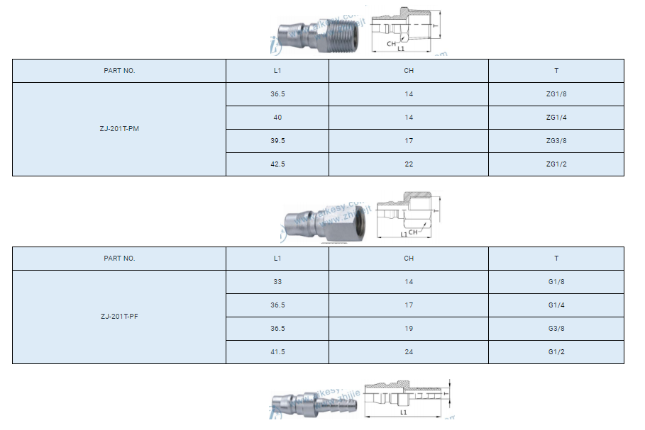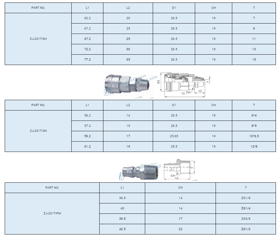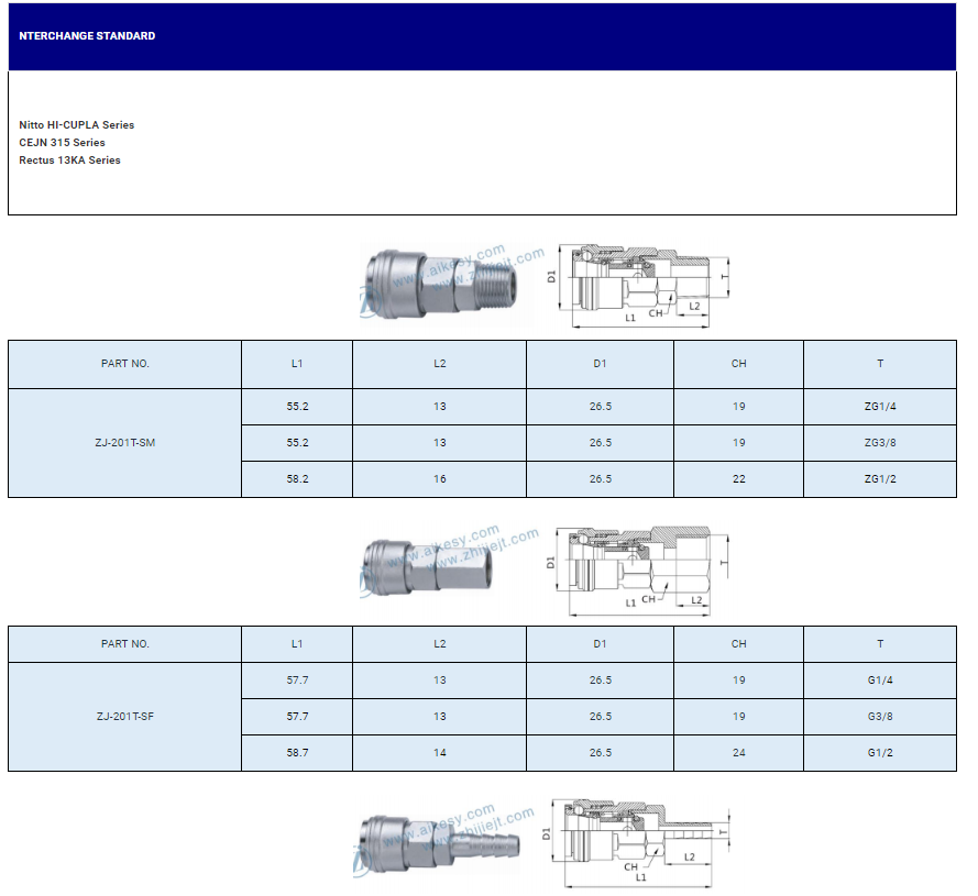 Khớp nối nhanh khí nén: ZJ-201T - DM, SF, SH, SN, PM,PF