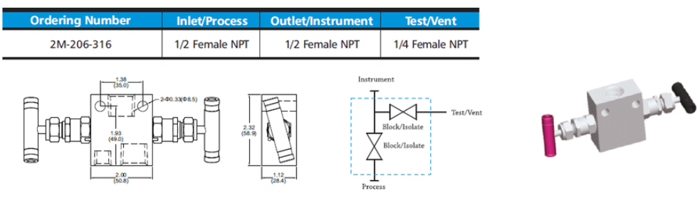 Manifolds valve: 2M-206-316 - Hikelok