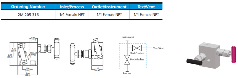 Manifolds valve: 2M-205-316 - Hikelok