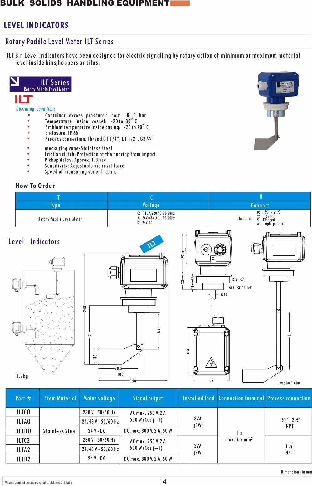 Báo mức van bướm Silo Model: ILTC0 115/230VAC - Wam