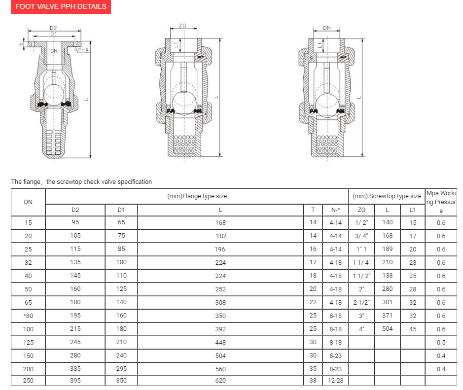 FOOT VALVE PPH