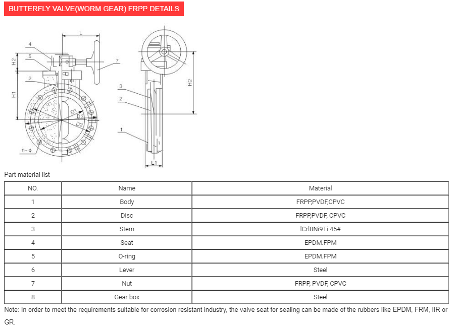 BUTTERFLY VALVE(WORM GEAR) FRPP