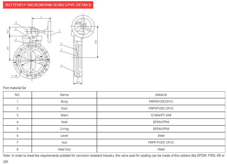 BUTTERFLY VALVE(WORM GEAR) CPVC