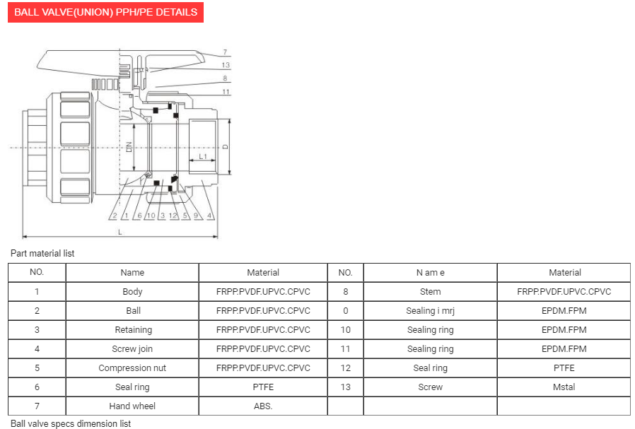 BALL VALVE(UNION) PPH-PE