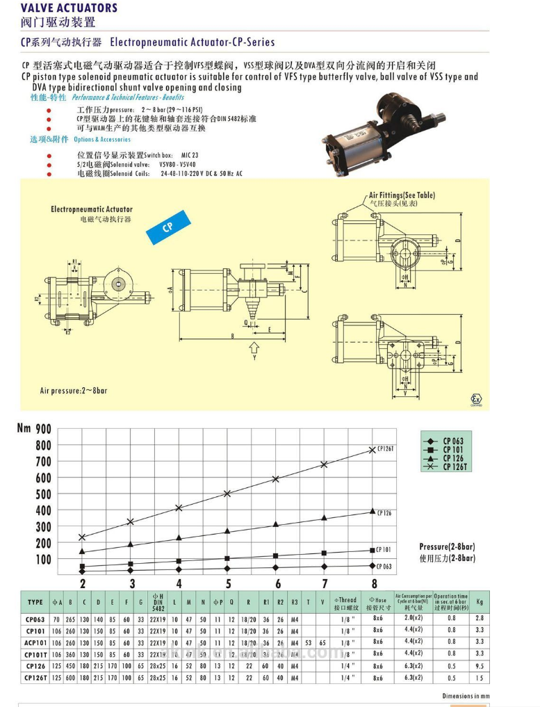 Xi lanh khí cho van bướm silo Model: CP126T - Wam