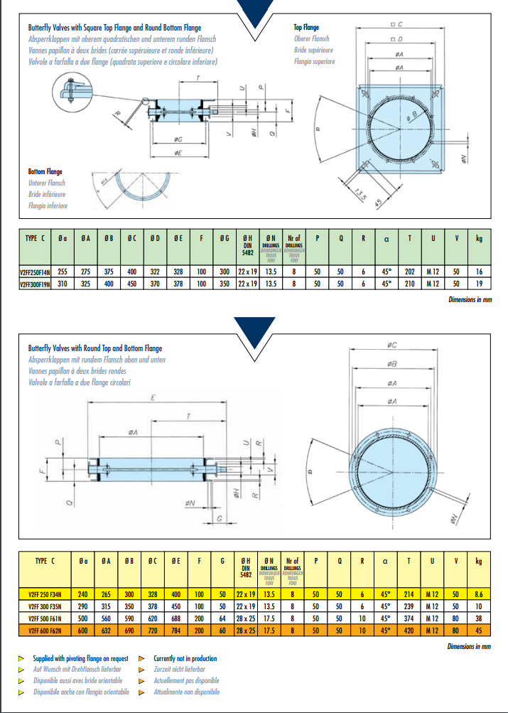 Van bướm Silo 2 mặt bích V2FS 250 - Wam