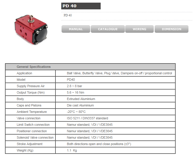 - Kiểu: ON/ OFF (0~900) : Modulating ( Tín hiệu Input – output 4 ~ 20mA)
